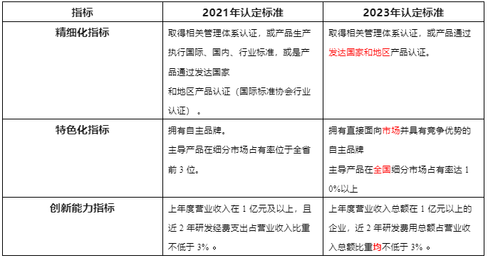 2021 VS 2023專(zhuān)精特新“小巨人” 企業(yè)認(rèn)定標(biāo)準(zhǔn)變化對(duì)比