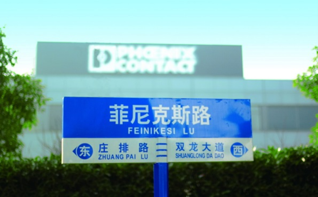 (以菲尼克斯冠名的菲尼克斯路和菲尼克斯鳳凰壇,正如鳳凰壇的銘記“以表彰以菲尼克斯為代表的優秀入園企業所做的突出貢獻,特此冠名“菲尼克斯鳳凰壇”)