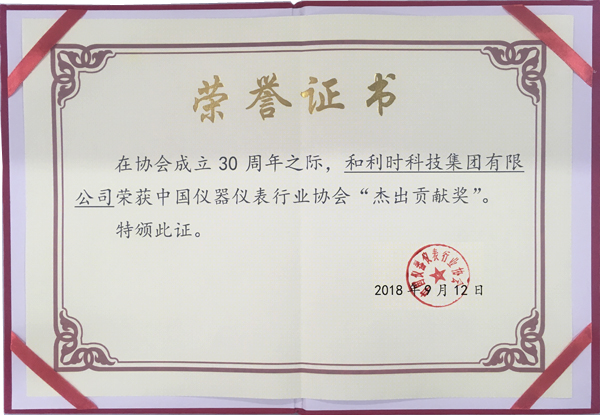 和利時集團榮獲杰出貢獻獎,該獎項主要表彰業內杰出企業,獲獎的要求包括:儀器儀表業務收入在本專業中名列前茅;主營儀器儀表產品具有自主知識產權,技術水平居國內領先地位;儀器儀表產品在國家重大工程項目中取得突破性應用,在替代進口、出口創匯等方面成績顯著;在資本運作、資源整合、承擔社會責任以及開展公益活動方面成效顯著,社會影響力大等。