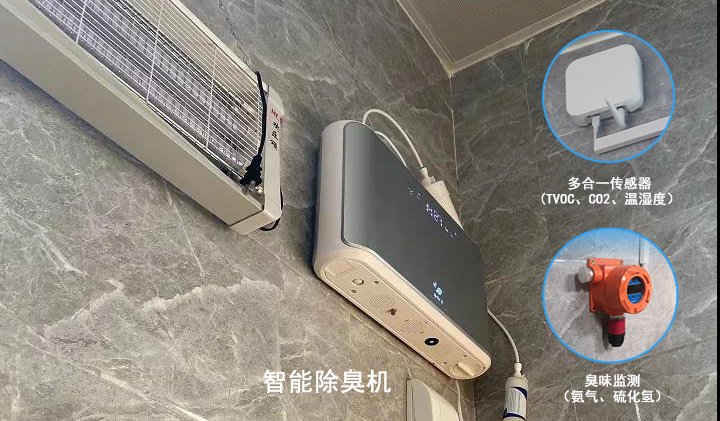 2.拒絕臭氣熏天:通過(guò)對(duì)公廁內(nèi)的異味(主要是硫化氫、氨氣)、PM2.5、TVOC、CO2溫濕度等環(huán)境狀態(tài)實(shí)時(shí)監(jiān)測(cè)。同時(shí),公廁還安裝了超聲波霧化除臭系統(tǒng)設(shè)備,里面加入了除臭劑、植物精油等,當(dāng)環(huán)境空氣質(zhì)量不達(dá)標(biāo)時(shí),系統(tǒng)就會(huì)自動(dòng)向監(jiān)控中心發(fā)出報(bào)警,并同步開(kāi)啟超聲波霧化除臭系統(tǒng)設(shè)備,自動(dòng)除臭,直至清除異味。