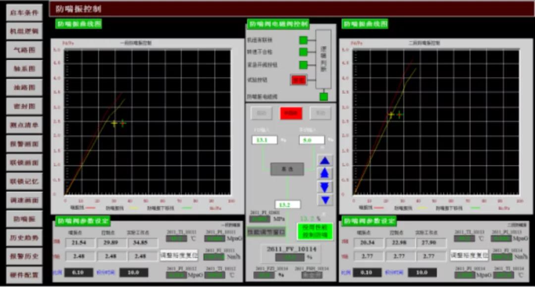 在機組啟動和停機過程中,由于機組流量過低,如果沒有防喘振控制,就會因喘振的發生對機組造成損壞。