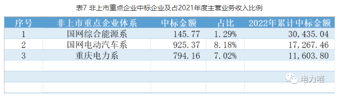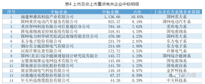 本項目中標的3個非上市重點企業(yè)體系,國網(wǎng)電動汽車系中標金額最高。