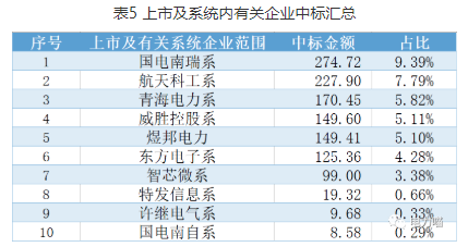 從上市公司部分來看,國網(wǎng)英大系中標金額超過1000萬元。