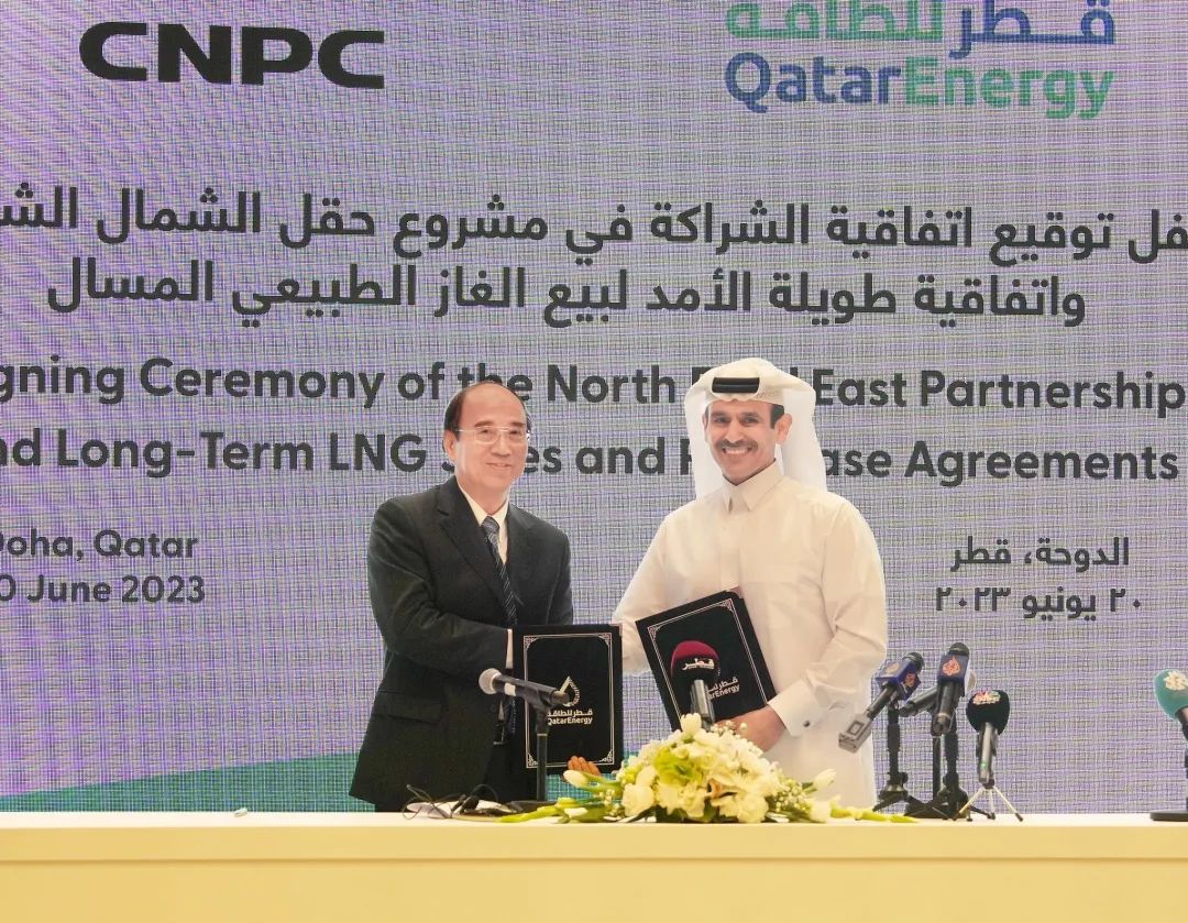 簽約儀式在卡塔爾能源公司總部舉行,中國石油集團(tuán)董事長戴厚良,卡塔爾能源事務(wù)國務(wù)大臣、卡塔爾能源公司總裁兼首席執(zhí)行官卡阿比分別代表雙方簽署合作文件并致辭。
