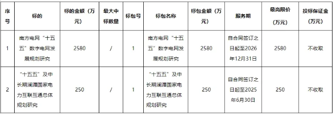 南方電網公司“十五五”電網規劃專題公開招標項目