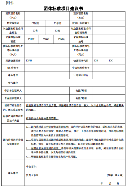 附件:團(tuán)體標(biāo)準(zhǔn)項(xiàng)目建議書