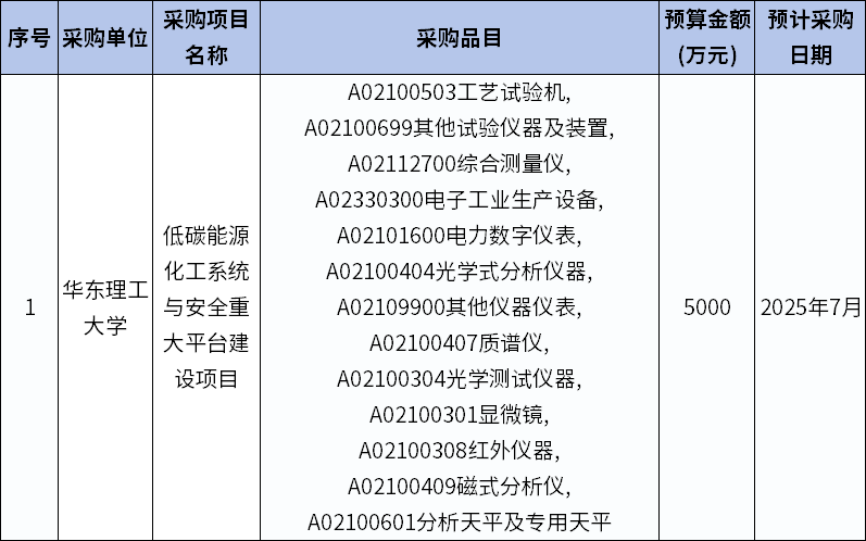 華東理工大學(xué)2025年7至12月政府采購(gòu)意向,預(yù)算金額5000萬。