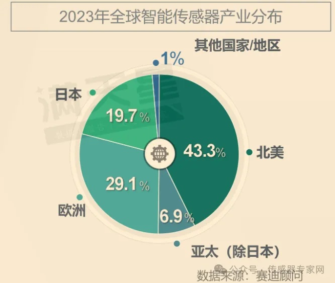 據(jù)工信部下屬產(chǎn)業(yè)研究機構賽迪顧問數(shù)據(jù)顯示,以美國為主導的北美地區(qū)占據(jù)全球智能傳感器產(chǎn)業(yè)產(chǎn)能的43.3%,是占比最高的地區(qū),其次歐洲占比29.1%,日本占比19.7%,亞太地區(qū)(除日本)占比6.9%,其他國家/地區(qū)占比1%。在產(chǎn)能方面,歐美地區(qū)在智能傳感器領域的產(chǎn)能占據(jù)全球主要地位。(詳細數(shù)據(jù)參看《3644.7億元,中國是全球傳感器“小”國!發(fā)展刻不容緩!》)