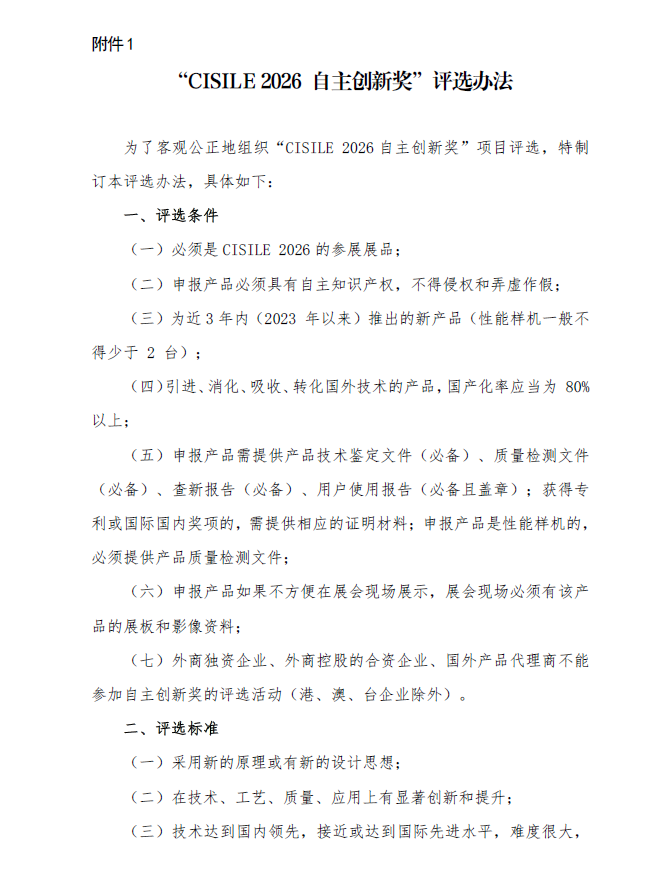 點擊“申請表”下載CISILE 2026 自主創新獎申請表