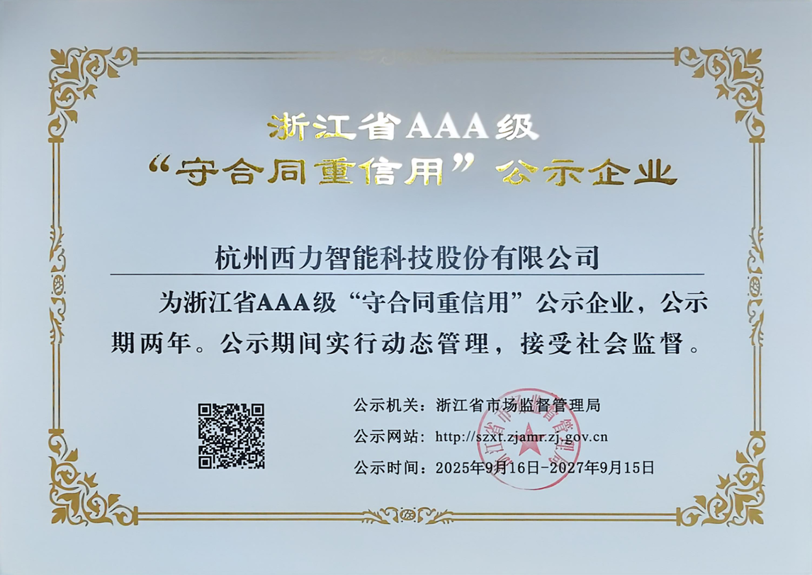 近日,浙江省市場監(jiān)督管理局公布了2025年度“守合同重信用”企業(yè)公示名單,公司憑借良好的合同履約記錄、完善的信用管理制度和規(guī)范的市場行為,獲評浙江省AAA級“守合同重信用”企業(yè)。