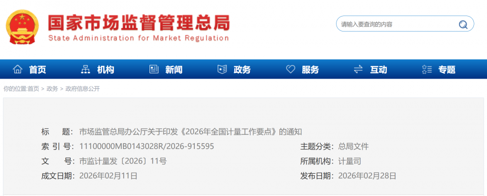 近日,市場監(jiān)管總局印發(fā)《2026年全國計量工作要點》,明確2026年將緊緊圍繞“講政治、強監(jiān)管、促發(fā)展、保安全”的工作總思路,緊扣“一個大市場、兩個綱要、三個監(jiān)管、四個安全”工作著力點,大力實施計量強基工程,科學謀劃“十五五”計量工作,加強基礎(chǔ)建設(shè),強化監(jiān)管,創(chuàng)新服務,深化國際合作,加快構(gòu)建國家現(xiàn)代先進測量體系,為基本實現(xiàn)社會主義現(xiàn)代化筑牢計量基礎(chǔ)。